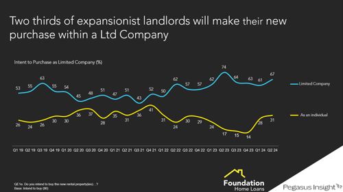 In addition, limited company landlords have shown robust levels of activity, with 22% purchasing new properties in the past year, compared to just 4% of unincorporated landlords. And, looking forward, two-thirds of expansionist landlords plan to make their new purchases within a limited company structure, while only 31% intend to buy in a personal name, less than half the rate of those choosing incorporation.
