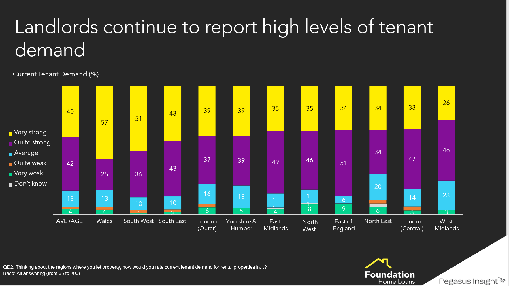 The report also highlighted the strength of tenant demand, with 40% of landlords rating current demand in their areas as being 'very strong' and 42% saying it was 'strong.' Although largely ‘strong’ across the board, perceptions of tenant demand vary regionally, with landlords operating in Wales currently reporting the strongest levels of demand and landlords in the West Midlands the ‘weakest’ levels of demand in comparative terms. Furthermore, rental arrears are trending downward, currently at 28%, which is about 30% lower than five years ago.